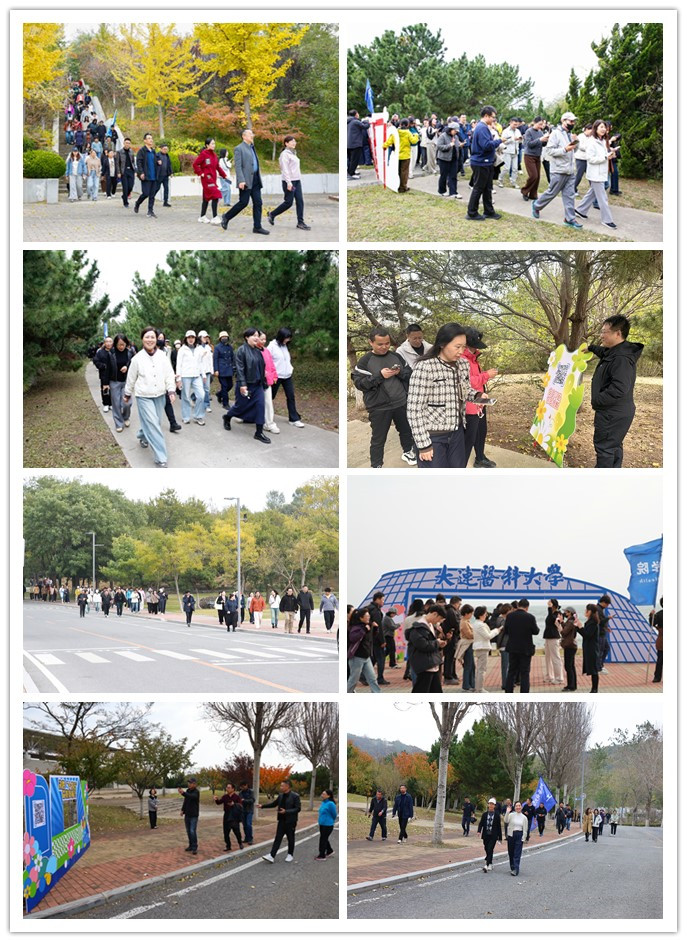 徒步途中,教职工们或结伴而行,畅谈工作与生活;或相互鼓励,携手攻克路程中的小挑战,在运动中释放了压力,在欢笑中增进了情谊。秋日的校园景色宜人,金黄的树叶、清新的空气与教职工们矫健的身影相映成趣,构成了一幅充满生机与活力的校园画卷。
