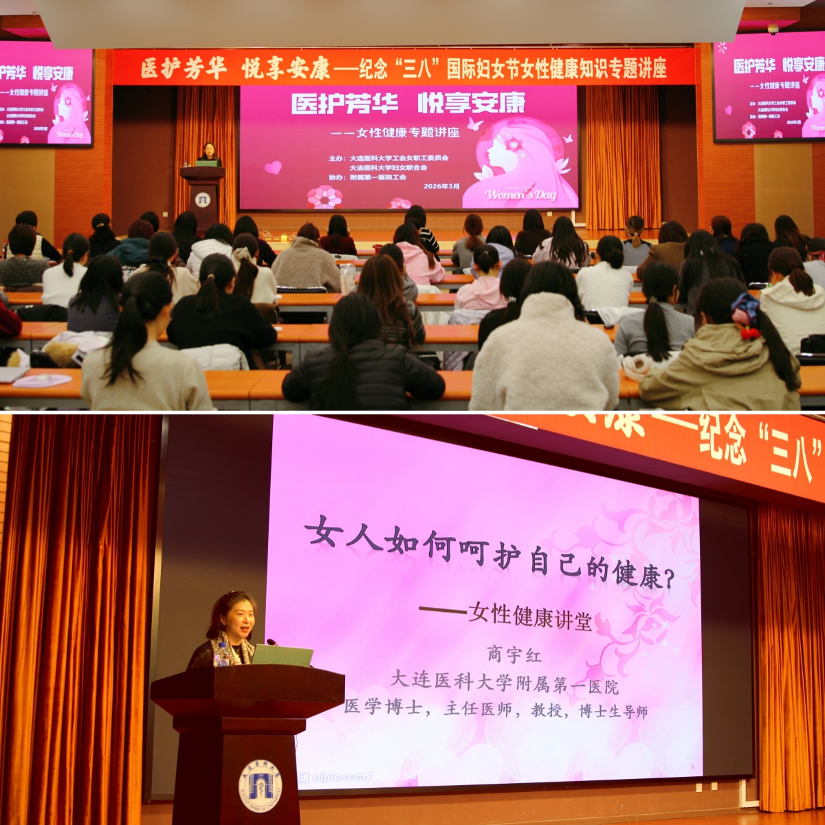“医护芳华 悦享安康”——女性健康知识专题讲座,特邀附属第一医院妇产科教研室主任、妇一科主任商宇红教授,为女性师生们深入浅出地讲解女性全生命周期不同阶段健康管理知识,并剖析常见的误区与困惑,有效提升了广大女性师生的自我防护意识与健康管理能力。
